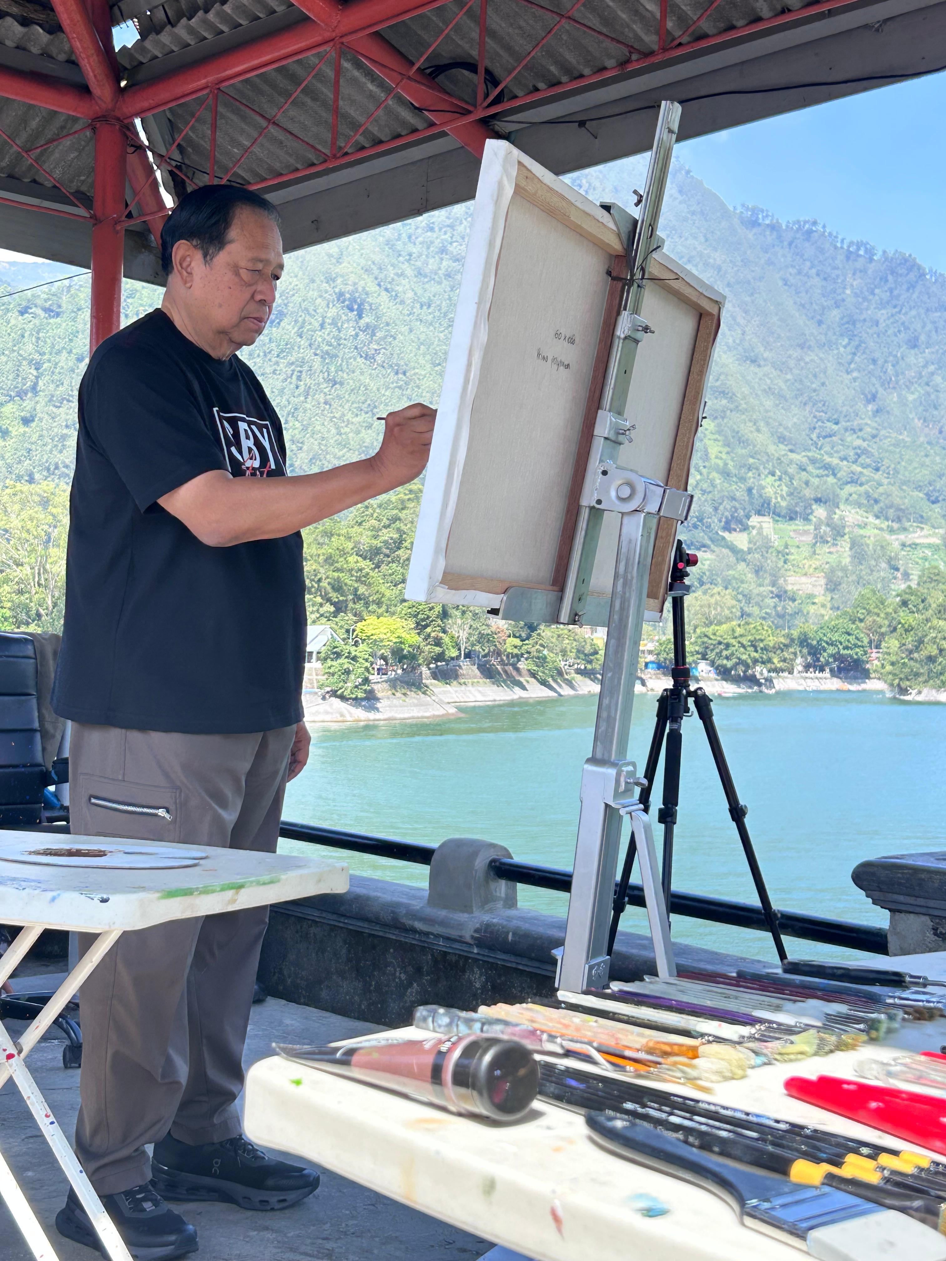 Sarangan, October 16, 2025 — The serene morning atmosphere at Sarangan Lake became even moreinspiring today as the 6th President of the Republic of Indonesia, Prof. Dr. H.Susilo Bambang Yudhoyono (SBY), took up his brushes to paint alongside 20 Fin