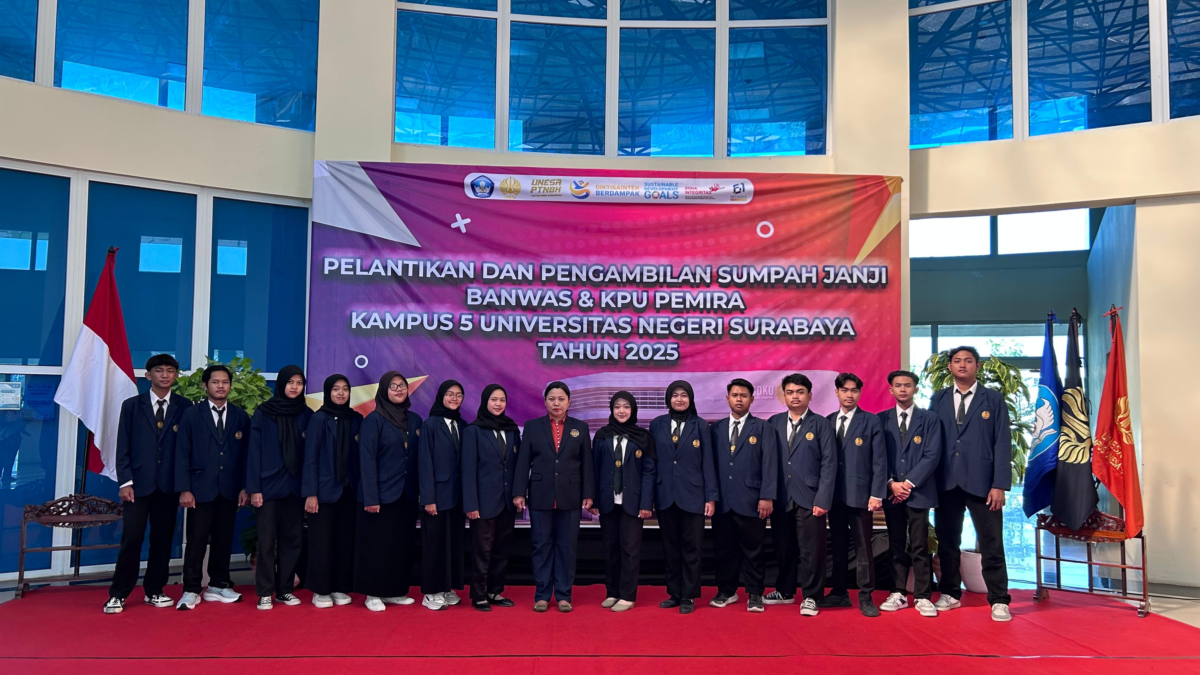 12th of December 2025 - UNESA Campus 5 held a formal inauguration and oath-taking ceremonytoday for the newly appointed members of the General Student Election (Pemira)Commission, KPU and Banwas, for the 2025 period. The event markedan important mile