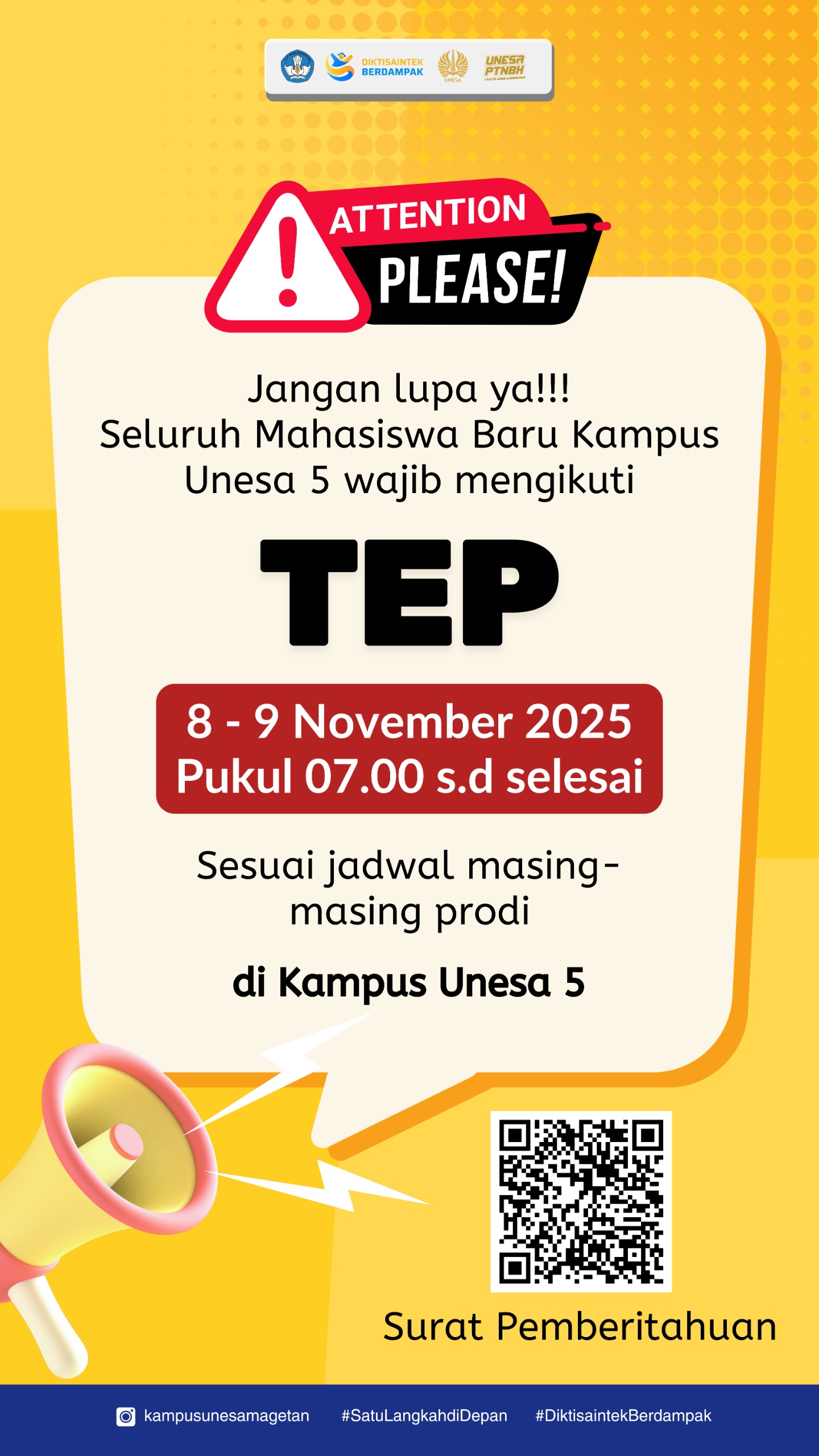 Magetan — The State University of Surabaya (Unesa) Magetan Campus 5 has officially announced the schedule for the first Test of English Proficiency (TEP) for new students of the 2024/2025 academic year. The test is scheduled for all students from v